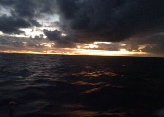 Our second night at sea and I was in charge again. The moon was dancing on the water, we had light winds and a big swell so I was enjoying the exhilaration of what felt like riding on a 44 foot surfboard.