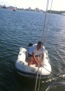 It wasn’t pleasant on the way back but all our visiting crew were very stoic and Ben was a great help helping Jonathan strap up the dinghy which had developed a drunken lean while hanging from its davits, due to the choppy sea.