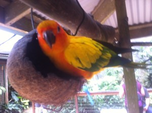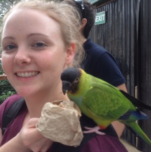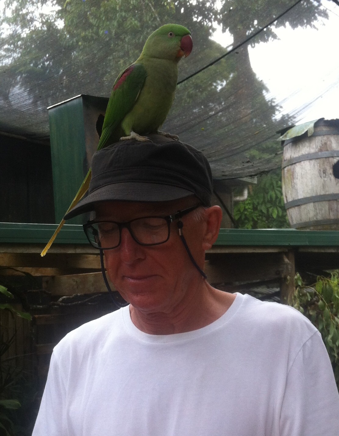 He who claims to not like shopping gets to know a local at Kuranda Bird SanctuaryWe were joined at the dinner by Oliver, Jonathan’s nephew and family friend Tilly who is teaching in Innisfail, about an hour’s drive away.