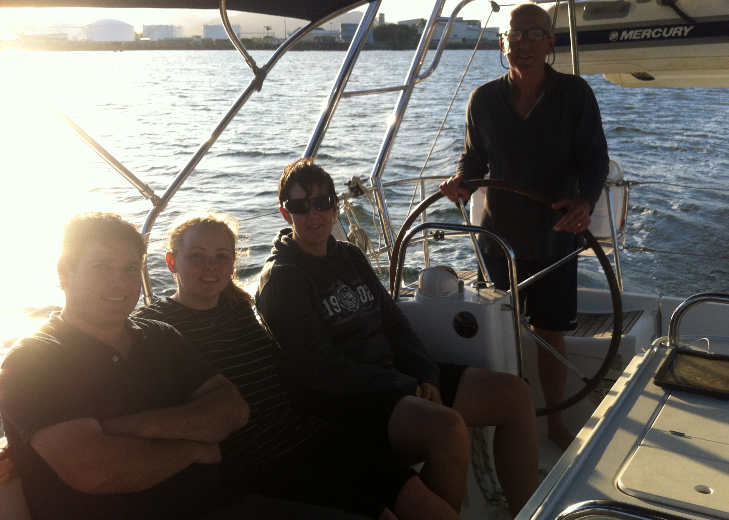 Visits from dolphins, amazing sunsets, seeing turtles and flying fish, a beautiful five kilometre walk to the homestead on Middle Percy Island, using our spinnaker for the first time, turning on our water maker to magically make sea water into beautiful clear drinking water, enjoying hot soup from a new thermos flask during night watch – only to find a carry strap and instructions in it the next day, the anchor chain getting stuck because the new chain had tangled (soon sorted out), phoning our family on our new satellite phone for the first time, an exhilarating early morning sail from Middle Percy Island to Brampton Island achieving 9.2 knots in 15 knots of wind, arriving at Brampton Island in the dark and having to reanchor as we ended up too close to other boats, R and R on Hamilton Island, a terrible bumpy night in Nara Inlet, watching the full moon rise as the sun set, wild gusts of wind, sailing through severe rain squalls, approaching Palm Island surrounded by cloud, discovering that with stiff winds behind us it’s more comfortable (and less work) to just have the foresail up, meeting our friends the Hannigans in Mourilyan Harbour, and the list goes on.