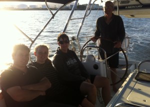 Jonathan and the crew prepare for a pleasant day sailWhat of the sailing? I hear you ask. Well we did take Ben, Sarah and Bec out for what the weather forecast promised to be a gentle sail to Fitzroy Island last Saturday.
