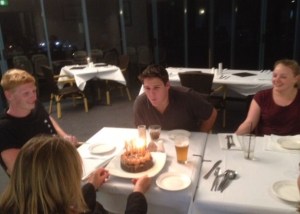 Unfortunately they forgot to light the candles so it lost a little of its impact but once remedied we had the ritual singing and blowing out of candles and enjoyed the chocolate cake!