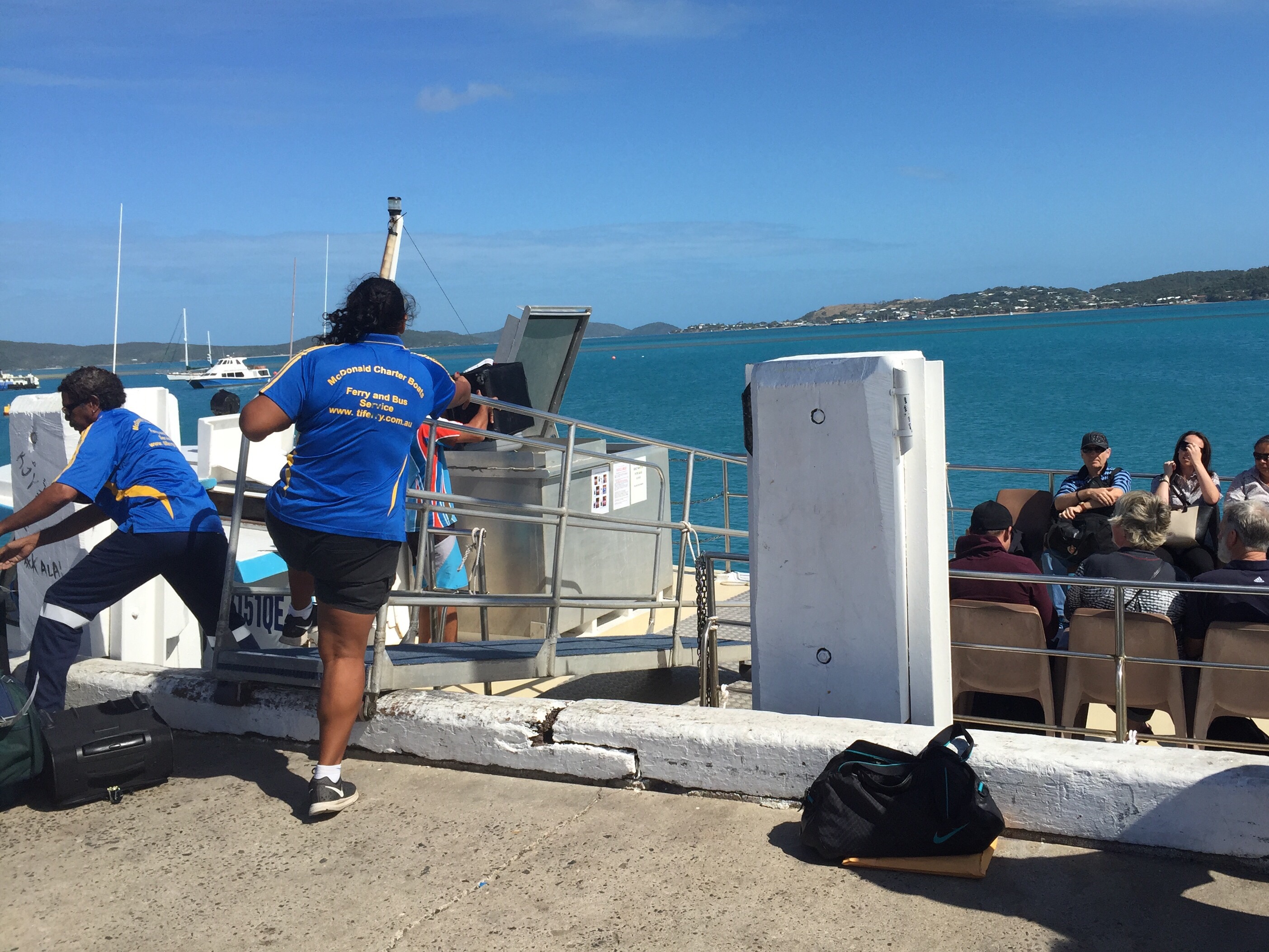 The energetic and hardworking staff in the Horn Island to Thursday Island ferry