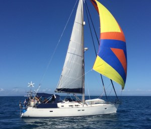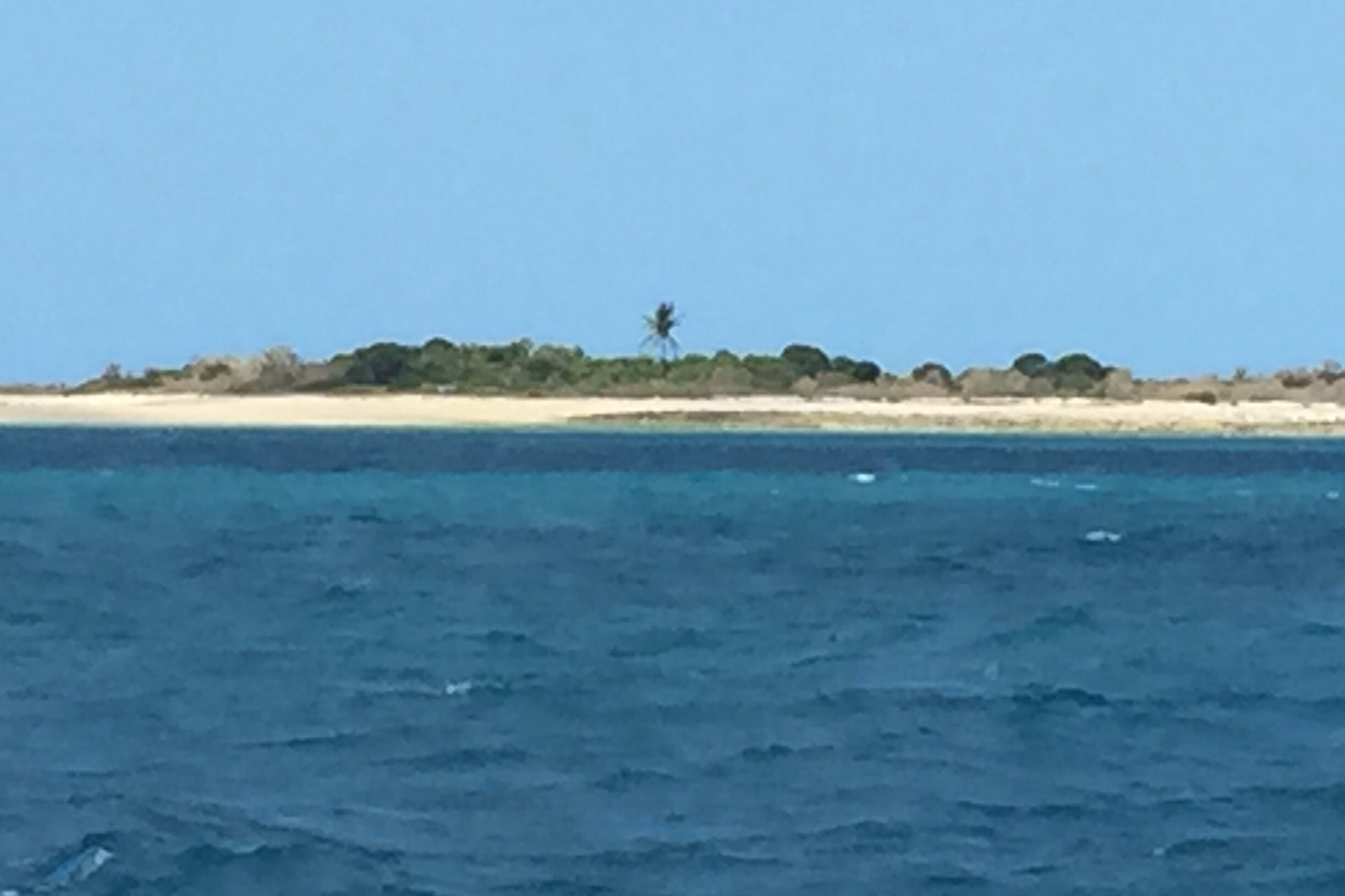 This yacht keeps a steady pace but won’t win any speed recordsArriving at Morris Island at 3 pm after a brilliant sail, we were delighted to see this pretty coral cay which provided a great anchorage in fairly boisterous conditions. A solitary coconut palm planted in memory of a diver who died in the days of pearling and trochus shell luggers, stands like a beacon to guide sailors on.