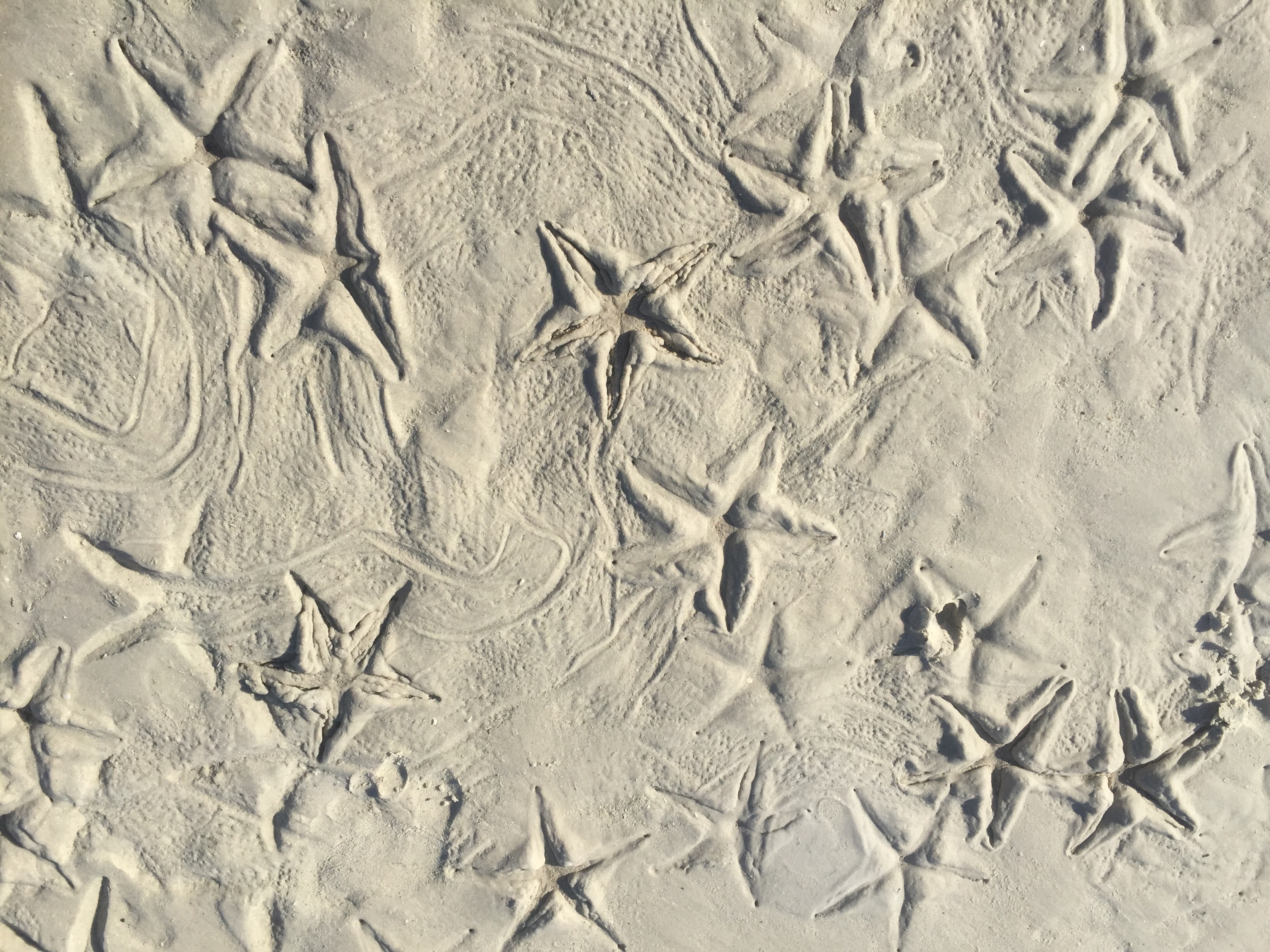 We went for a glorious walk on the beach at Margaret Bay – thought about wandering in the mangroves before hearing from others on the rally that there were crocodile trails to be seen. So we stuck to the sand and were rewarded with the sight of literally thousands of star fish that had partially buried themselves in wet sand.