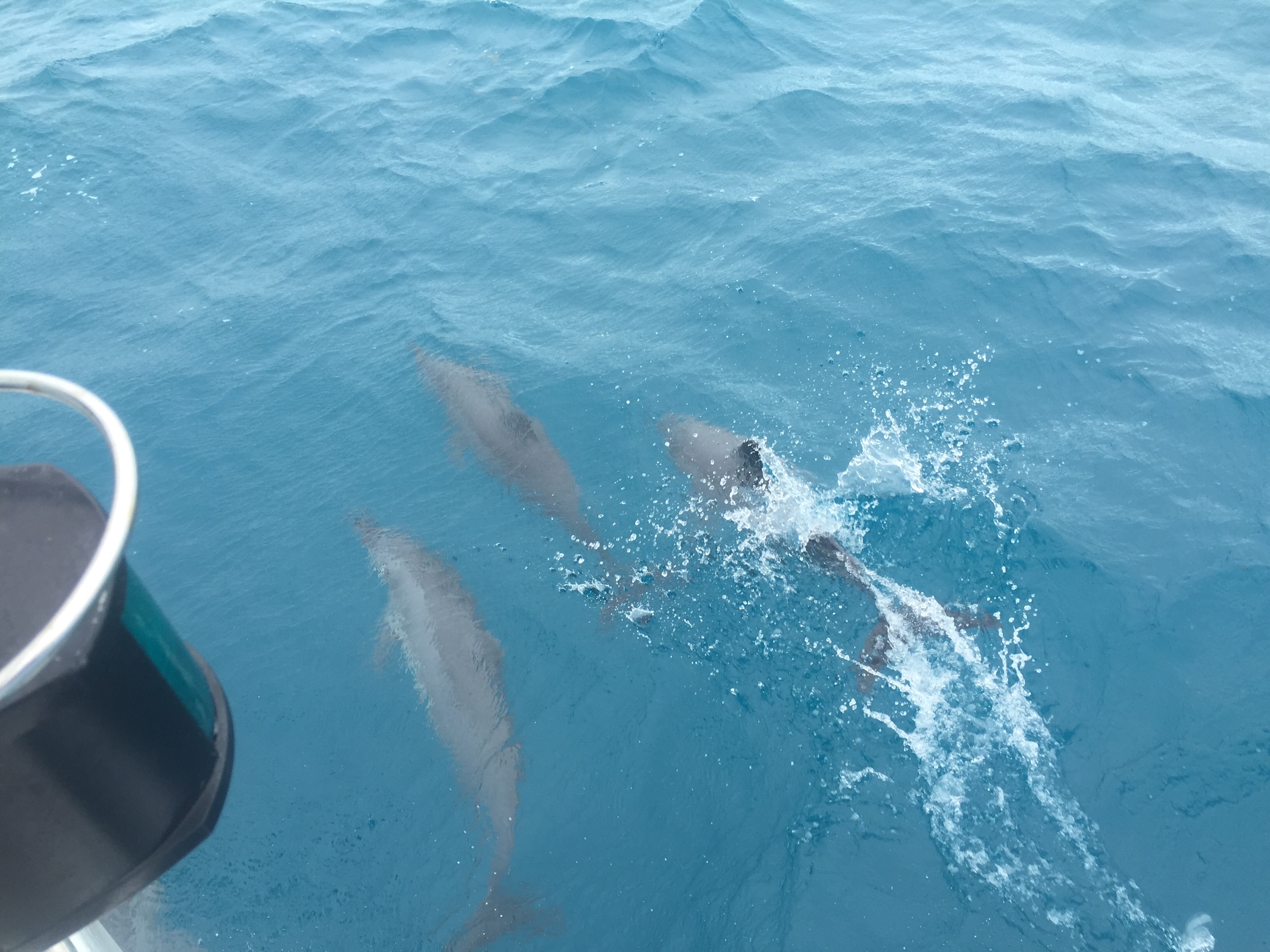 Along the way we had an enchanting visit from a really large pod of dolphins – some really tiny ones amongst them (babies? A Pygmy breed?) and some really massive ones, with all sizes in between.