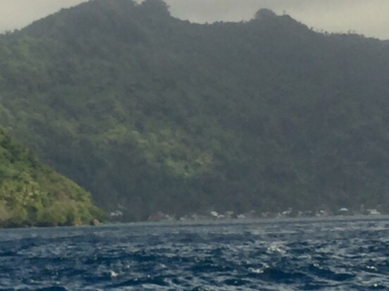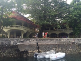 We passed through an entrance between two islands and headed for Banda Neira. As we approached we were told there was a space for us to tie up, stern in, in front of the famous Maulana Hotel.