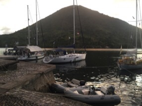 We needn’t have worried as we received lots of help from boats already tied up – Shakti and Kind of Blue – who came out on their dinghies to take our lines and shout instructions.