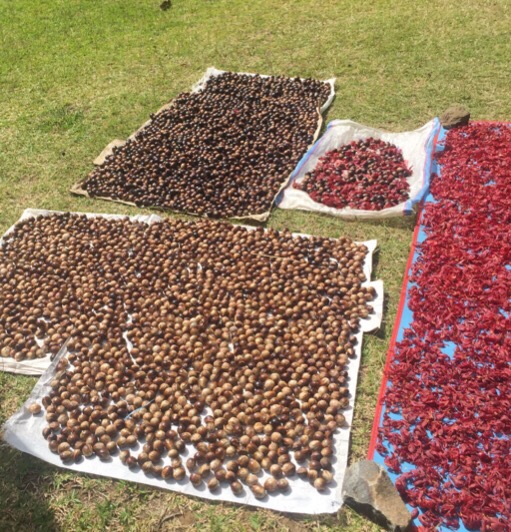Everywhere we walked each of the houses had nutmeg and cloves out to dry just beyond the front door.