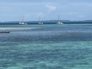 Boats in the Hoga Island anchorageThe snorkelling on the Hoga Island reef is spectacular. Even people who have dived on reefs all over the world were impressed with the vast variety of corals and the hordes of fish of every colour and pattern imaginable.