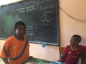 Petros’s grandson (left) and friendThe village was very clean and well looked after and the school was the best we had seen so far – posters and pictures on the wall, notebooks with very neat writing inside, text books , including ones to learn English and a good atmosphere.