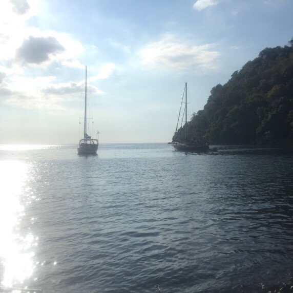 There were steep cliffs to one side which were only a stone’s throw away from the boat and the beach was less than 20 metres away. All rather scary but we anchored without a problem and gradually adjusted to being so near to a beach in one side and sheer cliffs on another.