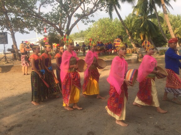 The dancers led us to a very smart conference centre, with the band bringing up the rear, where we watched a promotional film on Lombok.