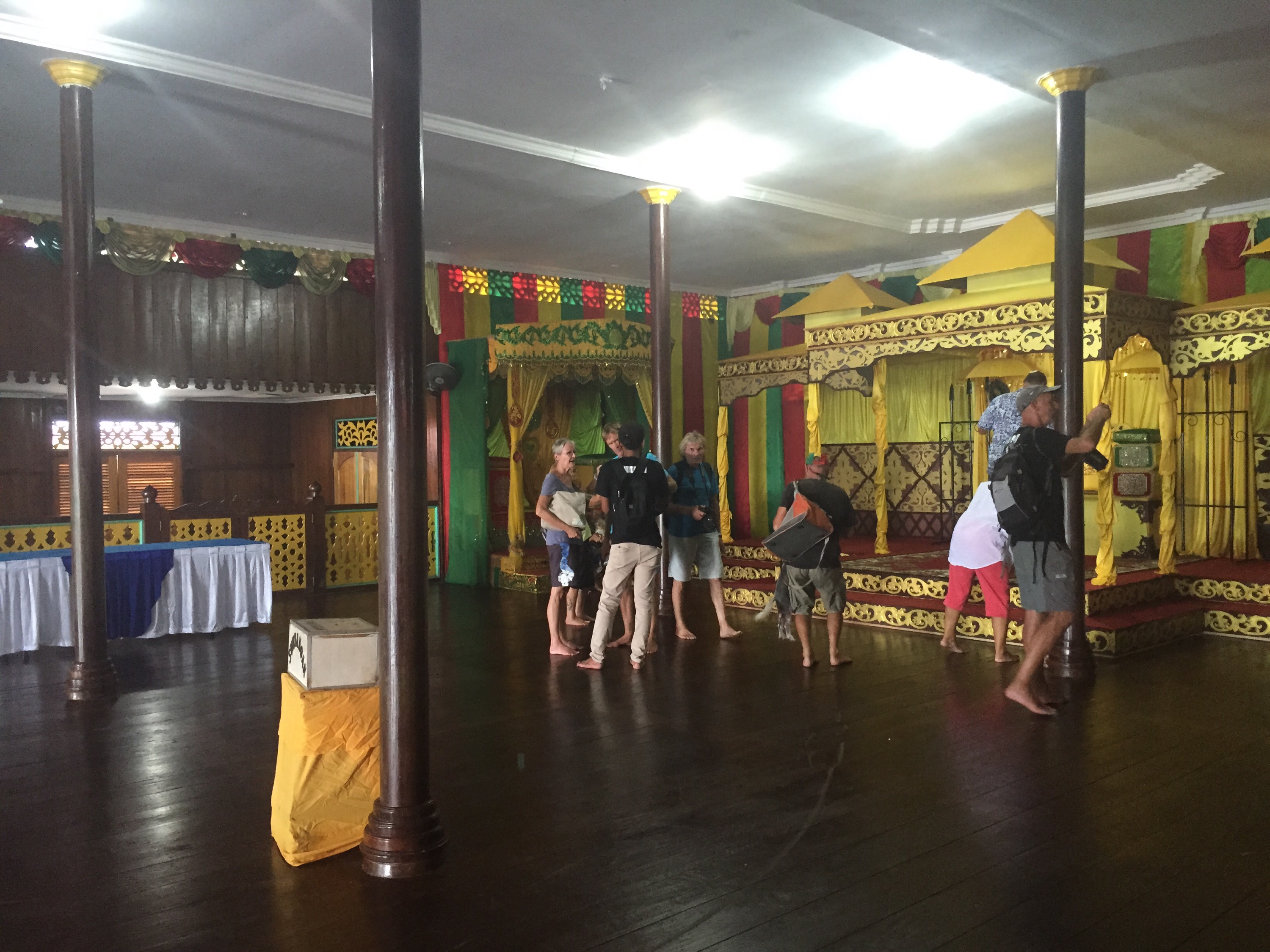 We were reluctant to leave Ketapang where we had enjoyed a fabulous time. As well as attending the party of the year and a fabulous welcome ceremony, we visited a traditional Malay-style Sultan’s residence, wandered round an urban forest and saw monkeys and a few birds, were entertained at the Sultan’s palace and had a fabulous seafood dinner at a waterside restaurant.