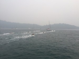 After a fantastic sail we arrived safely in Karimata despite the appalling smoky conditions. These were caused by the peat fires that have been burning uncontrollably because of the lowering of the water table as a consequence of the wholesale clearing of old growth forests in Borneo and other areas in Indonesia. This is not only disastrous for humans but also causing untold damage to wildlife, particularly the Orang Utans. This is shameful.