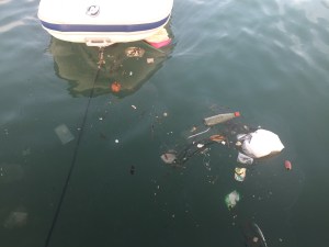 The water was truly disgusting – a miasma of plastic bottles, food wrappers and containers, chunks of polystyrene – even an old fridge! One yacht had two dead rats entangled in the propellor of their dinghy’s outboard motor.