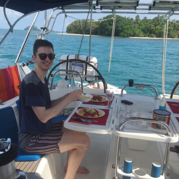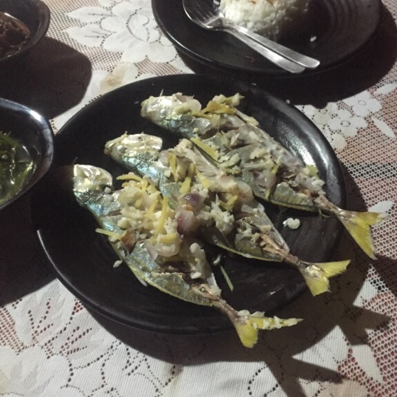 This is how we git around on the island – motorbike taxi!Not wanting to hang around the dirty port for longer than we needed to, we decided to head out again the next day and motored back to beautiful Benan (still no wind).