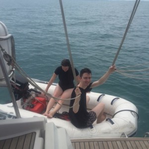 First night back on Balil Hai for HannahAfter the dirt and run down atmosphere of Tanjung Pinang, entering Singapore was like slipping into another universe – so clean, pristine even, everything working, no broken kerbs and holes in the pavements to negotiate, just calm, order and everything working.