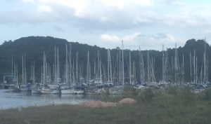 We motored for most of the the trip from Penang with just a couple of short sails as there was very little wind. The Marina at Rebak was chock full of boats but fortunately we had booked our berth weeks earlier. Entry to the Marina was highly organised with two guys there to catch our lines and Richard from Charon also kindly popping out of the comfort of his air conditioning to lend a hand.