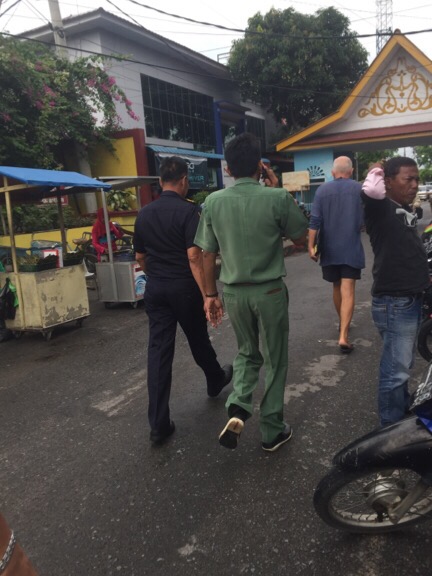 Jonathan accompanied by a customs official and our friend from the tourist office