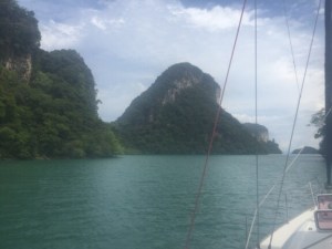We headed out of the eponymous Hole in the Wall and motor sailed a little further round the island of Langkawi hoping to find a quiet anchorage where we would be well protected from the South West Monsoonal winds.