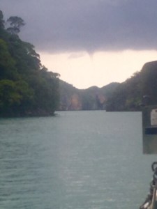 Later the weather broke and in the distance we saw a massive water spout – it made its spectacular way across the ocean before disappearing behind a headland.