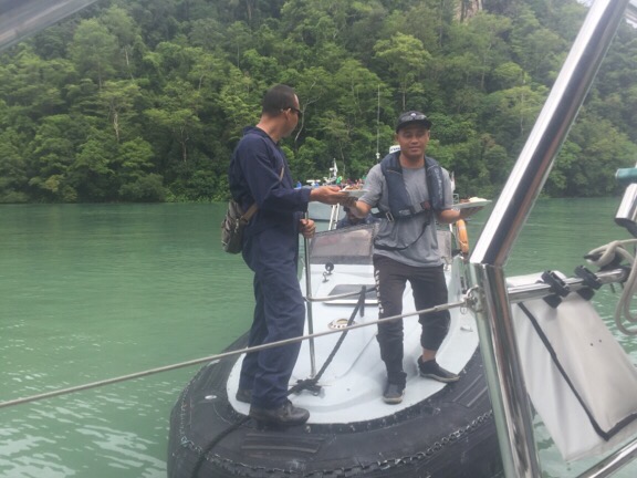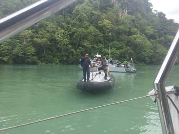 After much good natured photo taking by an official photographer and the presentation of any official naval cap to Jonathan, we departed the launch with First Admiral Rosli’s contact details and an invitation to call on him if ever we needed a hand in Malaysian waters.