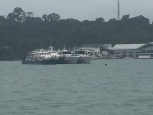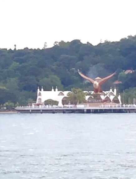 Going past the Eagle at Langkawi ferry terminal on the way to the marinaGetting into the Marina was a little bit hair raising as there was quite a current caused by the outgoing tide which we hadn’t taken into account (note to self always try to make a point of entering a marina at slack tide!)