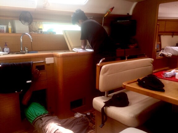 Mending the fridgeClean clothes (including underwear!), duty free booze, fresh vegetables, other food basics and a working fridge – we were ready to leave on the next stage of adventure – next stop Thailand!