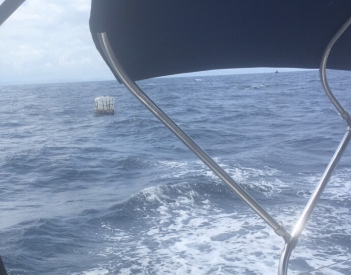 Hazards like this marker buoy are difficult to spot in bad weatherA second storm broke and we soldiered on- uncomfortable, soggy but OK.