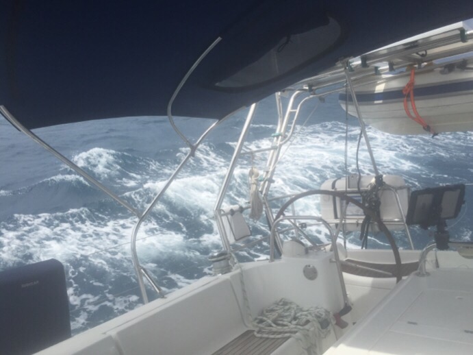 Then around 2.30 pm the mother of all storms erupted and we were falling off massive waves in nil visibility with Jonathan hand steering as the autopilot could not cope with the large seas.