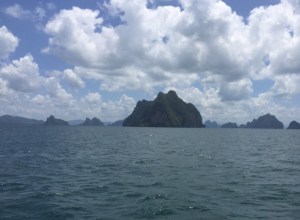 Cruising Phang Nga Bay is like sailing through the land that time forgot – ghostly sheer sided sea mountains rise out of the milky green water like a herd of petrified prehistoric sea monsters.