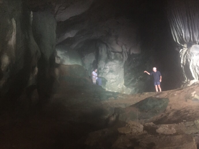 The cave had a massive opening chamber and then narrowed to a dark passageway. There were tiny bats flitting overhead and minute but pesky sandflies making a meal out of me so we didn’t explore too deeply into the inner cave system.