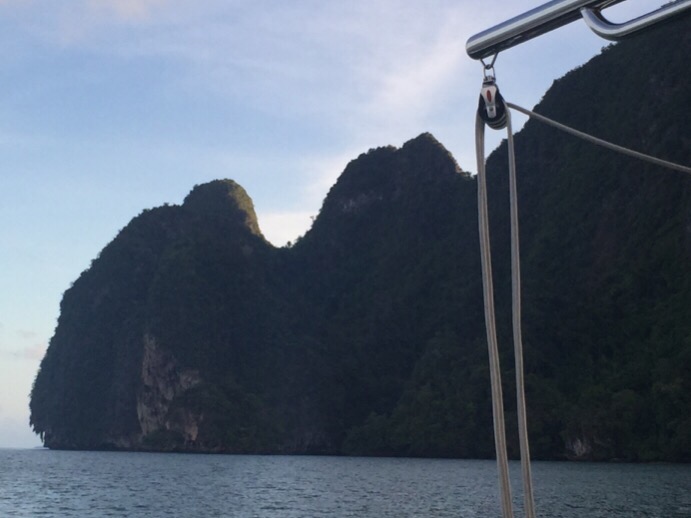 We anchored off Koh Phanak, just metres away from soaring cliffs. We had already spied some caves and pretty little coves and of course we were itching to explore them.