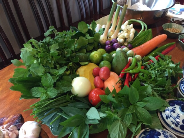Part of Mina’s gardenWe were warmly welcomed by Mina and there on the table was the most beautiful collection of herbs, spices and vegetables that I have ever seen.