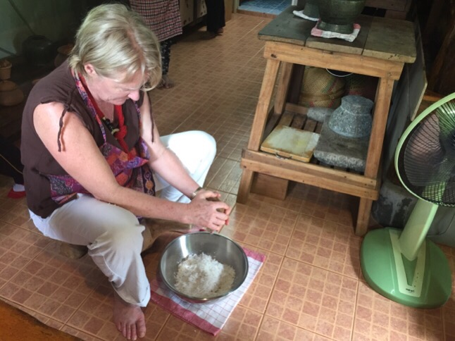 The beginnings of a curry – the smell was sensationalSome of the chopping and grinding had been done for us but we all had the opportunity to have a go at each stage of the cooking process – even shredding and squeezing fresh coconut to make coconut milk.