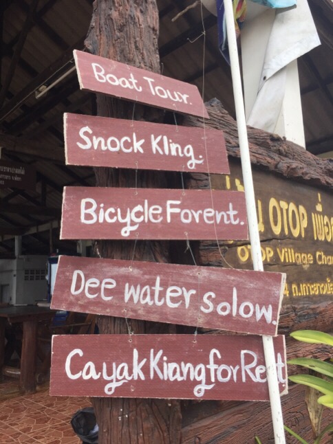 Interesting signage at the OTOP workshopThe workshop is part of a Thai government “OTOP”scheme to assist villagers to develop and commercialise new skills other than traditional hand to mouth farming.