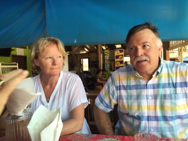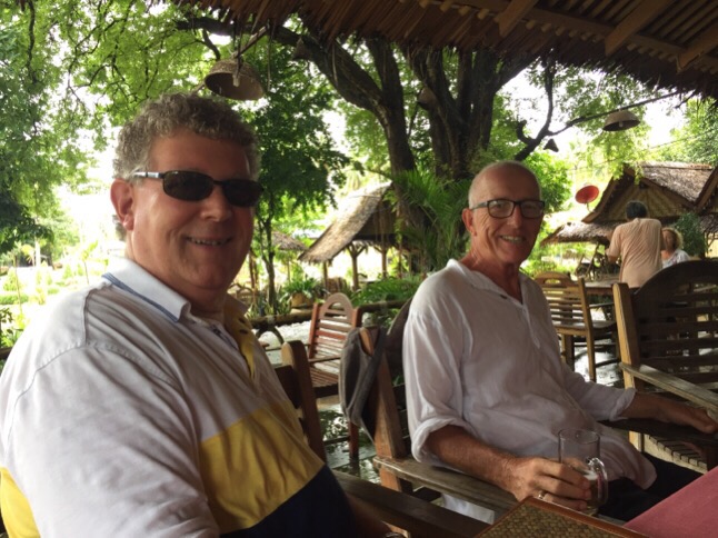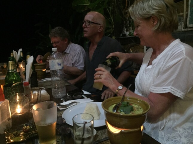 Drinks at the Sabai Corner Bungalows with our newly arrived visitorVery happy to see our newly arrived friend we returned with him to our favourite haunts – the Sabai Corner Bungalows and then the Rice Paddy for an excellent dinner.
