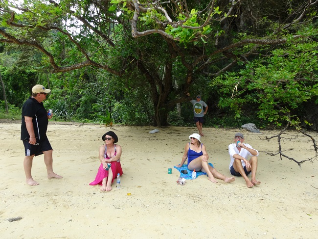 We hadn’t been at the beach long when the wind started to get up. Suddenly the water was being whipped up to a nasty chop which we had to motor into on our little dinghy. Three of us plus the skipper started back to Bali Hai but it soon became apparent that the trusty tender wasn’t coping so we went back to the beach and offloaded one passenger which made it easier and a more comfortable ride.