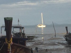 The beach cafe during the dayAfter a time we decided to wander back to find our dinghy and as we went passed the beach restaurant found that there was a table free. We weren’t going to starve after all!