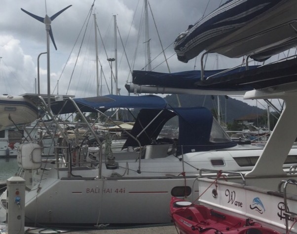 Bali Hai happily settled at Boat Lagoon MarinaWe took a taxi to the airport and after some confusion on the taxi driver’s part (as he hadn’t realised the new international terminal had opened the day before) made it to the correct check-in desk with loads of time to spare.