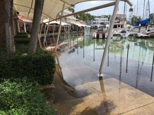 We were amazed by the extreme high tide the day after we were turned away from the airportFortunately I had a few Aussie dollars in my purse and again very luckily, there was a money changer open not too far from the Immigration office. We just scraped enough together to pay the bond, hire the motorbike, buy brunch and have enough left over for another taxi ride to the airport.