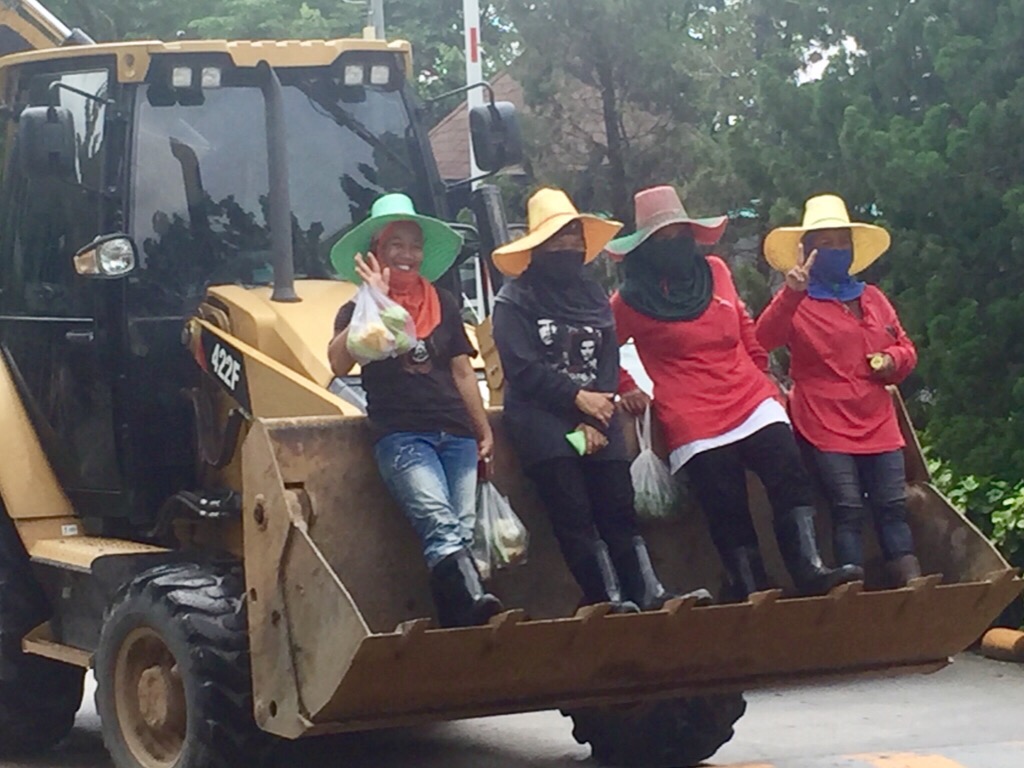 Health and Safety in most places wouldn’t allow children on a travel lift but there were two perched up there!