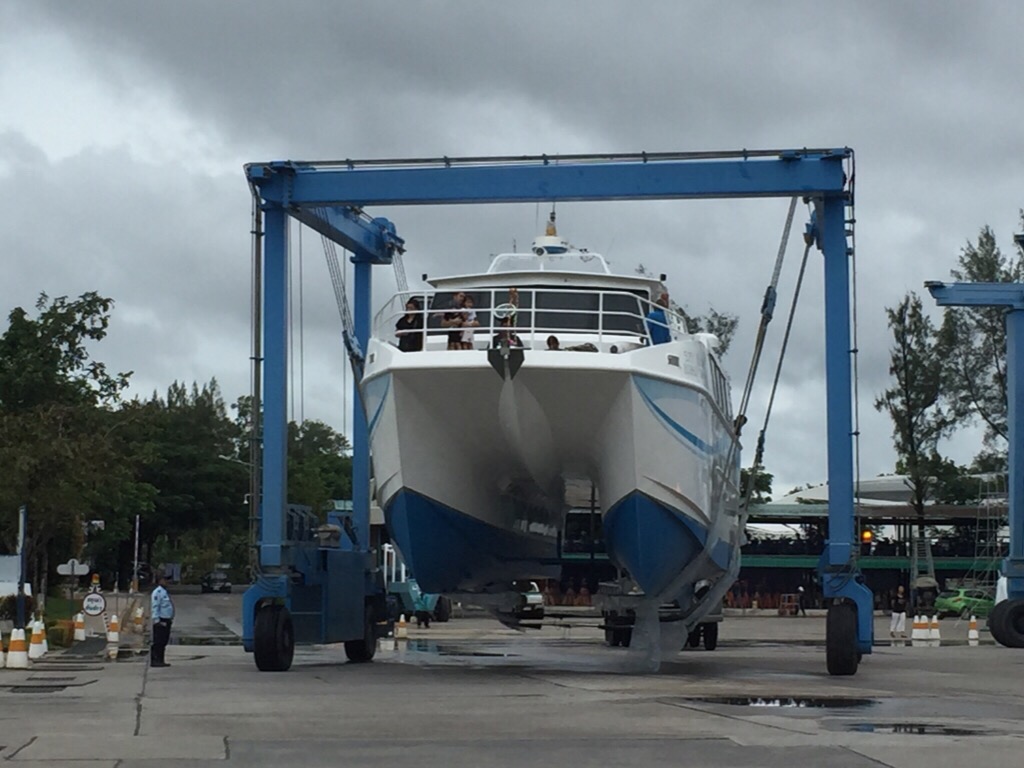 This was an exciting moment for the family and they had a little ceremony en route to the water with incense burning and prayersThe Boat Lagoon Marina is situated on a huge area which as well as the marina and massive haul out area includes two hotels, condominiums, houses, a supermarket, several chandleries and many other shops, cafes and even a couple of massage places, hairdressers, dentist, clothes shops and a manicurist.