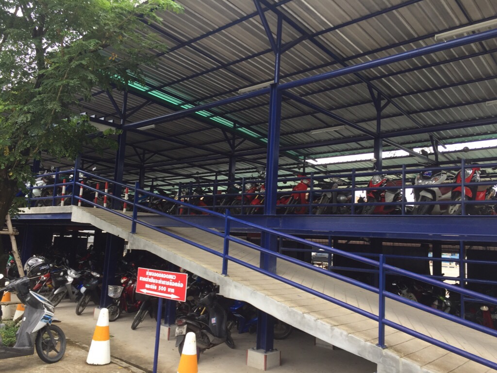 No motorbikes allowed in the boatyard – so everyone has to park theirs in a multi storey motor bike park!Every day in the cooler air of the evening we set out on a walk round the campus. There was always something interesting to see.