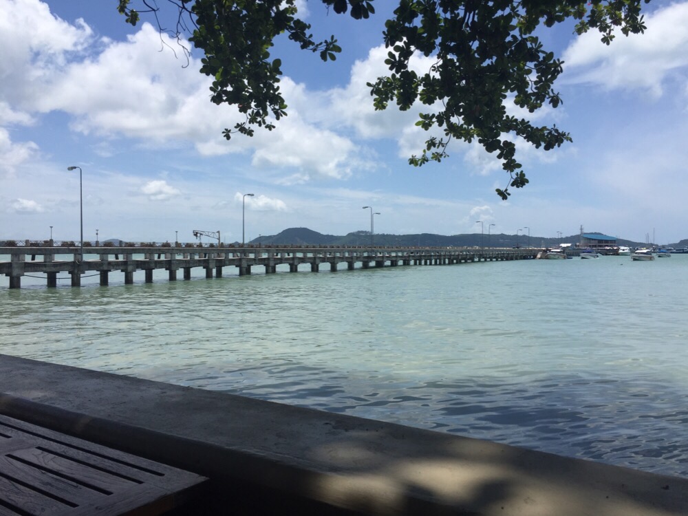 The 800 metre pier in Ao Chalong. The Customs and Immigration are at the end.The Immigration officer asked for two thousand baht but we said no, I was listed as a passenger and we had been told at Immigration in Phuket town that passengers don’t need to pay. He accepted this straight away with no argument.
