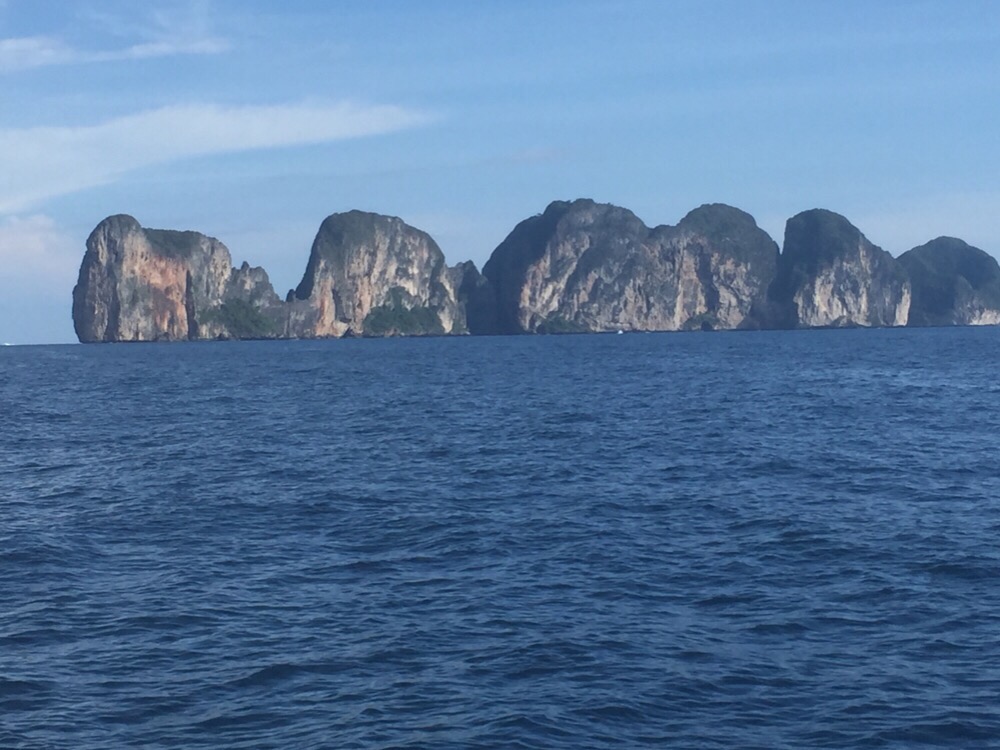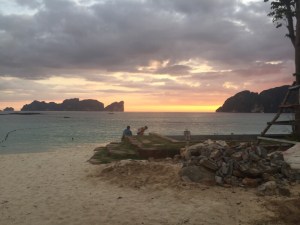 Approaching the Phi Phi IslandsWe anchored at Loh Moh Dee Beach on Koh Phi Phi Don and as it was still light we went ashore to take a look.