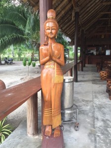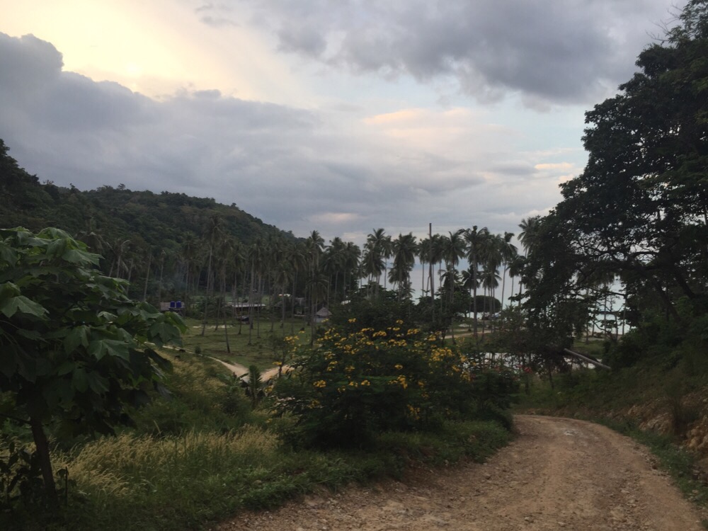 We toiled up the hill behind the beach and crossed over the saddle of land, wandering into a resort with cottages perched precariously on the steep hillside.