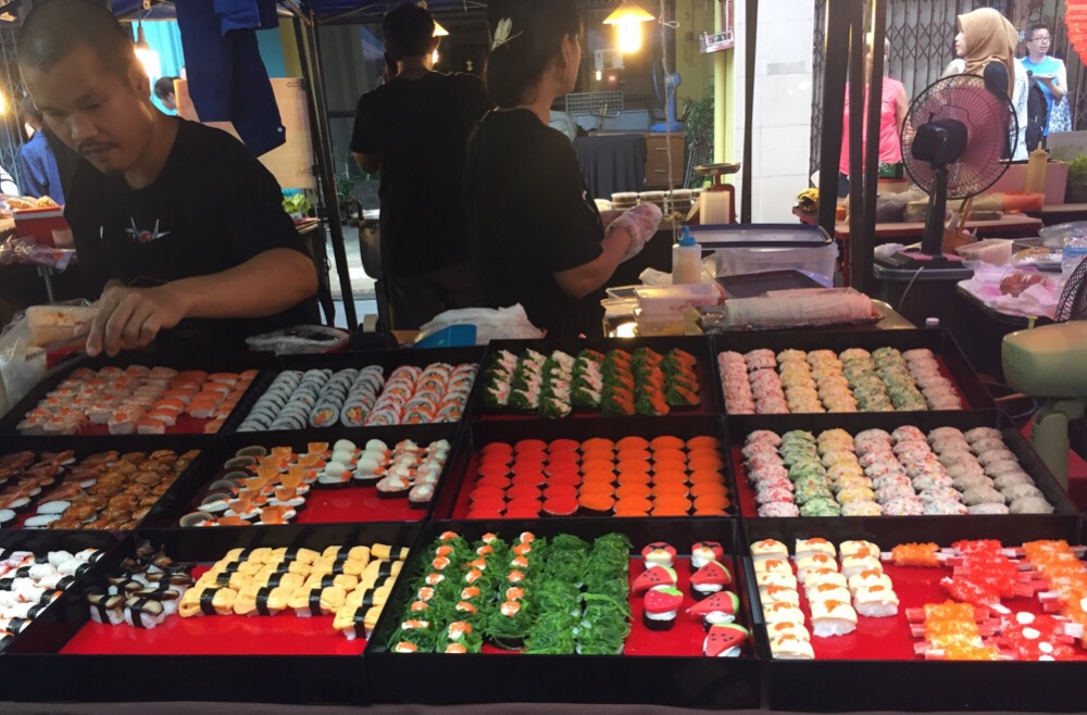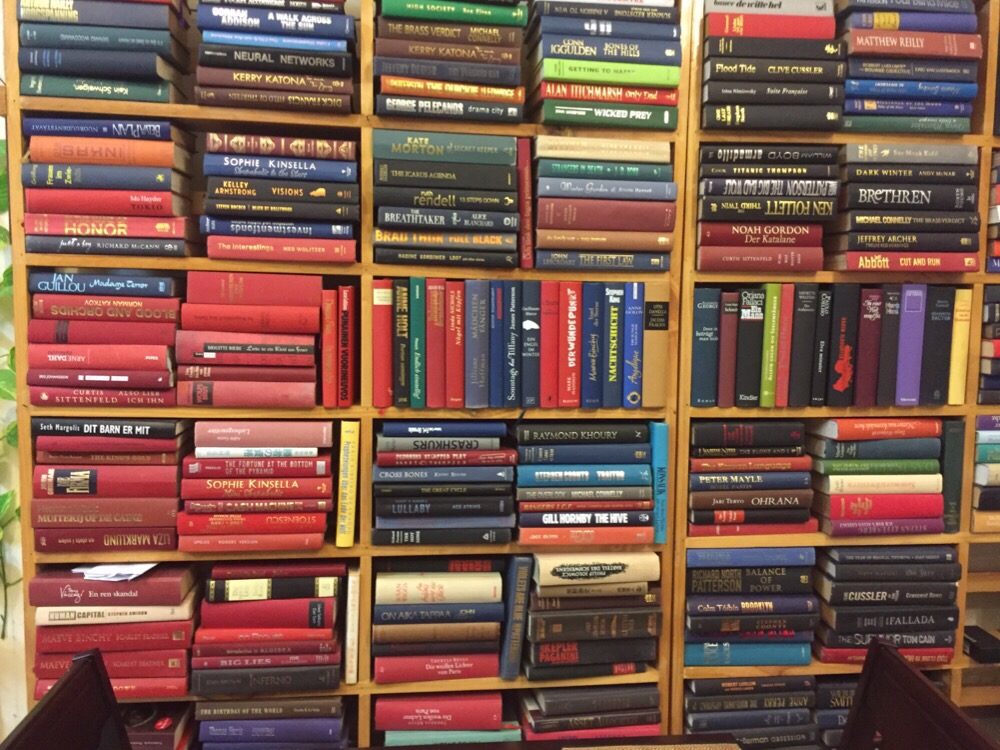 Great sushi!It was reasonably priced (less tax on grapes than wine!) and tasted really good. The bar also served good food and had an amazing second hand book store next door with books in every language you could think of.