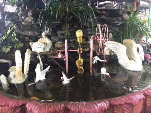 And the point of building a cabin on top of this small boat is?There were so many weird and wonderful statues and objects – animals, a helicopter, even a small children’s “race” track.